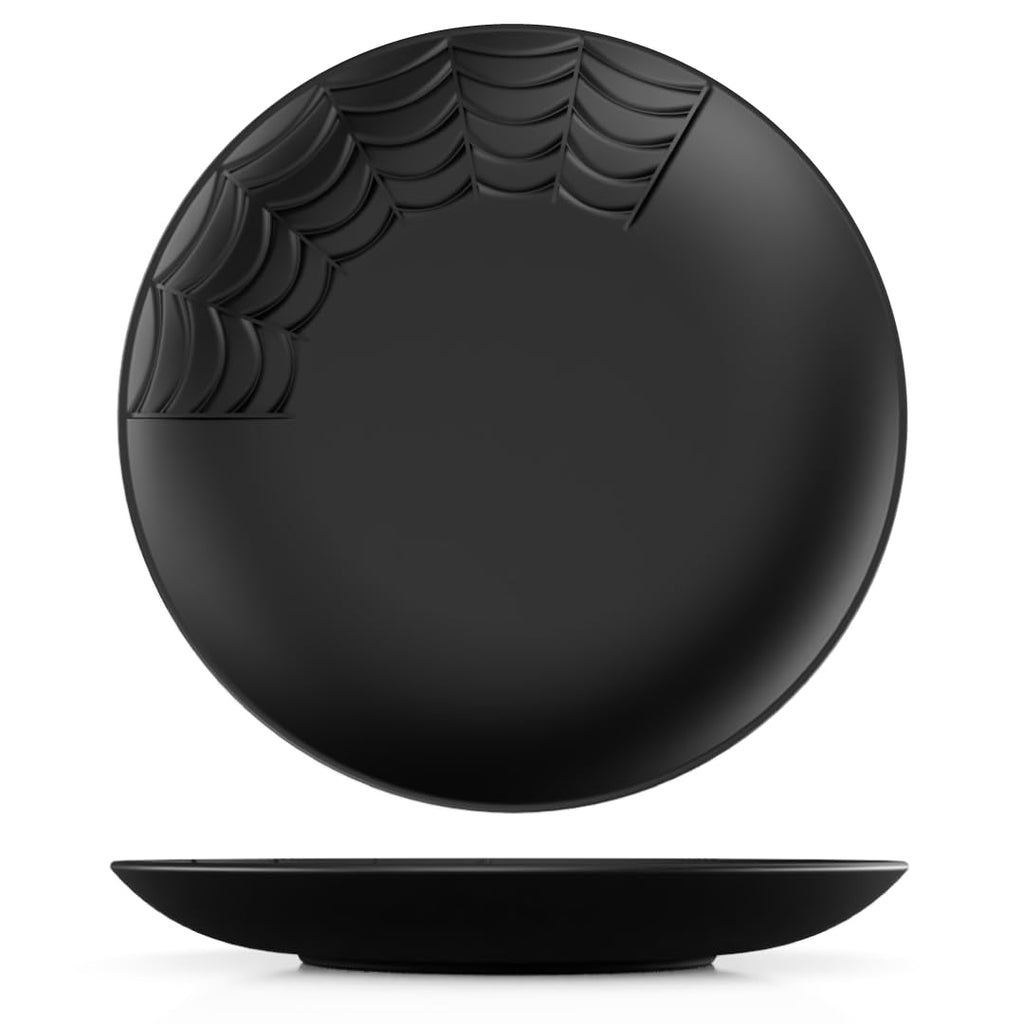Nomnu Gothic Salad Plates (1 Unit) With Spiderweb Design - Black Porcelain for Goth Table Setting, Enhancing Halloween and Spooky Dinner Decor