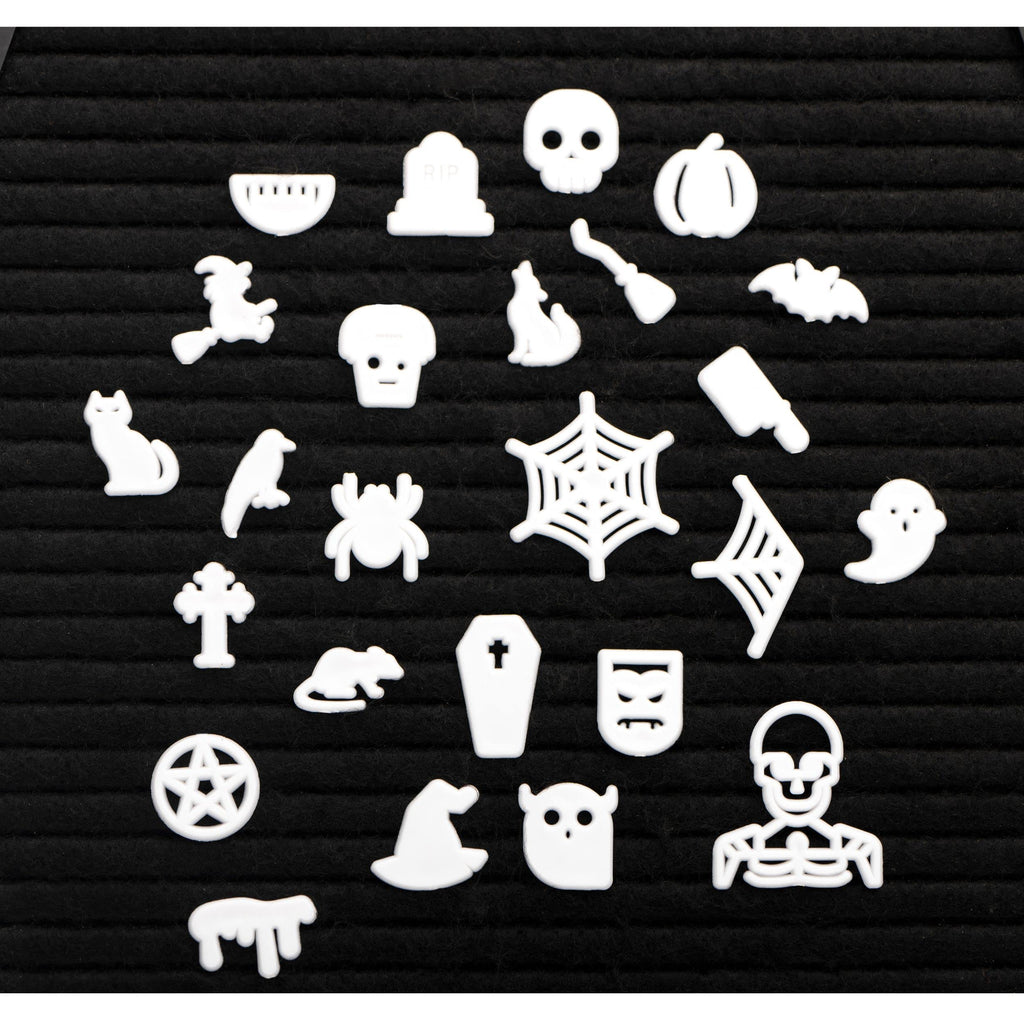 Spooky Letter Board Characters - Board NOT Included - +80pcs Felt Message Board Accessories - Shapes Include: Pumpkin, Coffin, Skeleton, Skull, Spider, Bat, Witch Hat, Broom